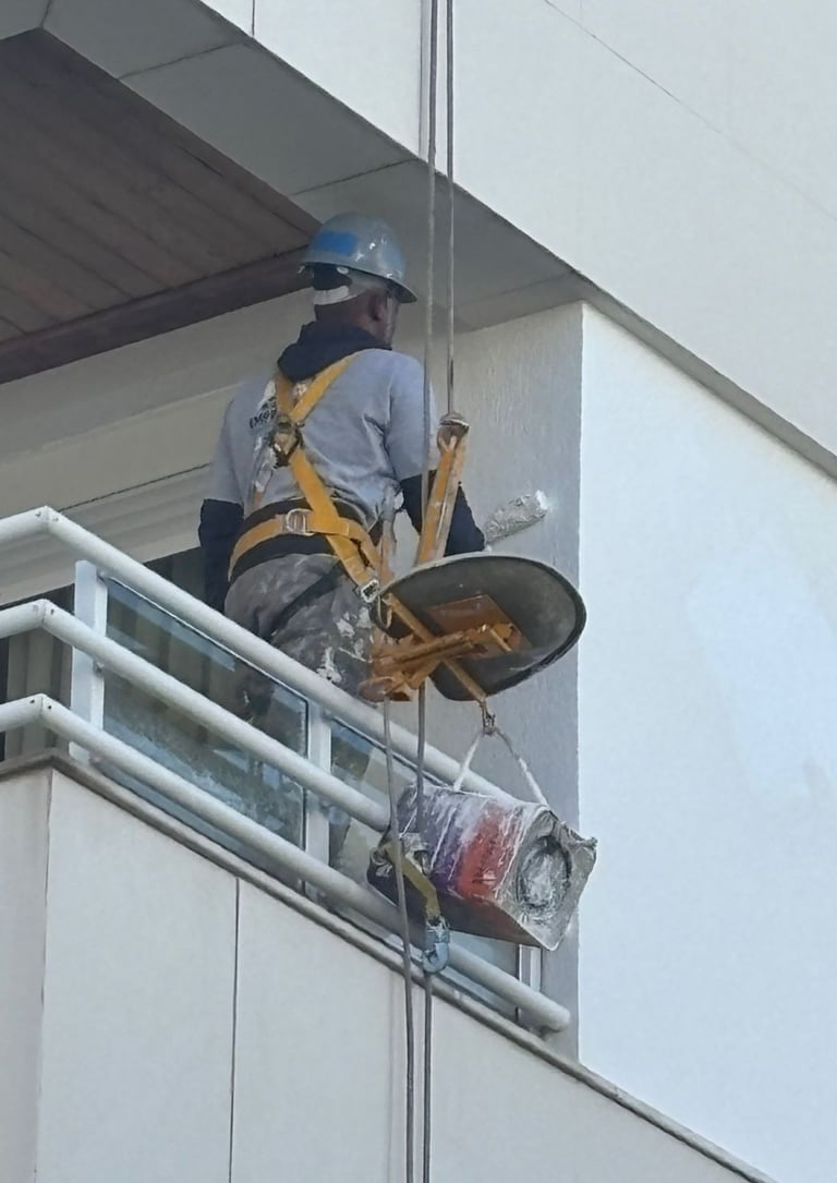 Serviços de pintura predial exigem equipamentos adequados, como cadeirinhas, andaimes e linhas de vida. Além disso, a equipe deve ser treinada e certificada para trabalhos em altura.